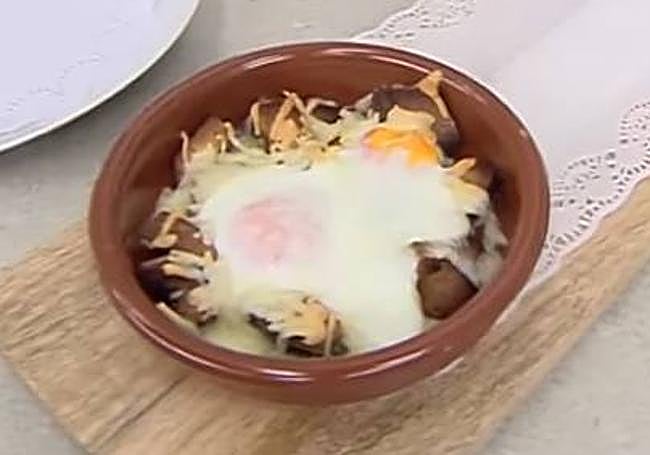 3. Colocamos las verduras en cuatro cazuelas e incorporamos el pan, el queso y los huevos.