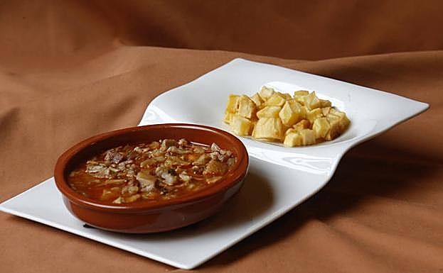 El siguiente plato del menú son los callos a la asturiana, que se diferencian del resto, sobre todo, en que son pequeños y se acompañan de patatas fritas. En el emblemático restaurante ovetense los preparan de buey de la Ganadería Cabrero. Trabajar las virtudes de este animal fue uno de los objetivos marcados por Iván Suárez, dueño del Llagar de Colloto, cuando pasó a gestionar el local hace ahora algo más de un año.