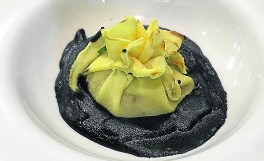 -Lo presentamos sobre un cremoso de tinta de calamar.