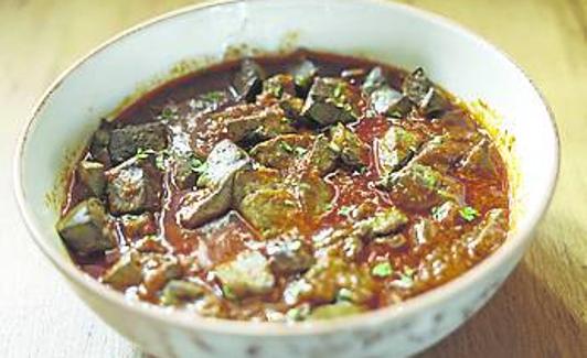 6. Cuando ablande y brille agregamos los trozos de hígado.