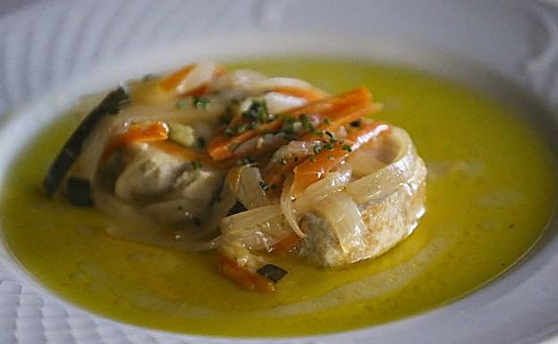 Javier, el cocinero que interpreta y redondea, pone su firma conjunta a las cocochas de bacalao con almejas, el tronco de pulpo de pedreru, las cebollas rellenas y, de no ir a tiro hecho, lo que el criterio del anfitrión, mestresala agudo y socarrón, proponga y disponga entre lo que previamente le propongan y dispongan los frescos mercados vecinos.