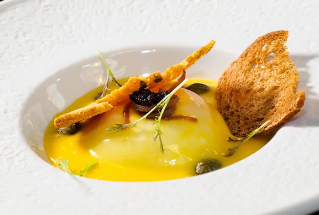 Véase conceptismo: tendones, carpaccio de salmón, berenjena sedosa, croquetas de puchero, alcachofas, callos, huevo benedictino, curry de ternera, presa ibérica, pixín a la mantequilla negra, cítricos, chiboust de chocolate blanco...