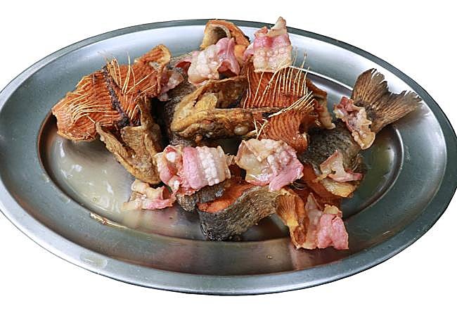 E independientemente que nos llevemos alguna para casa, que sobre panaderas apetecen, Sunny nos las fríe con tal perfección, crujientes por fuera y jugosas por dentro que, disfrutados los asalmonados lomos, muchos no dejamos rastro de la cabeza, delicadeza sonora con toque, bacón mediante, entre torrezno y hojaldre.
