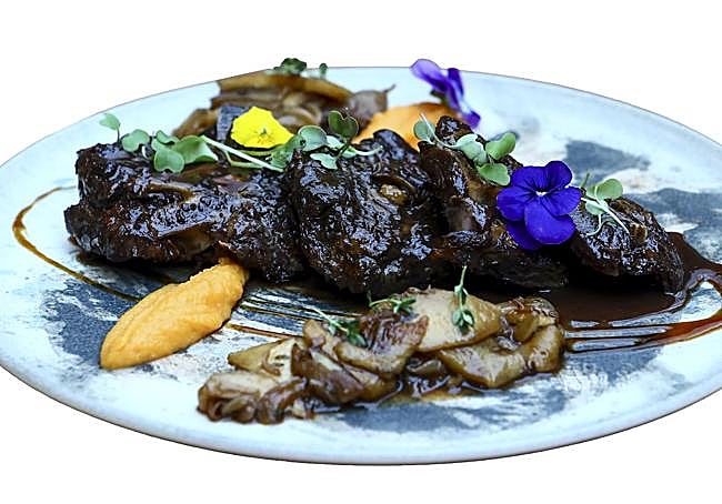 Ahora, Liliana y David, responsables de convertir las ruinas precedentes en este edificio moderno y complejo sin dejarse desanimar por los familiares y amigos de Argame (poco convencidos de las posibilidades de un lugar que rodean bosques, barrancos y soledades) idearon, planearon, obraron y triunfaron. ¿Motivos? Variados. Por ejemplo las setas cuando tocan, que el padre de Liliana fue un adelantado en enseñarnos sus suculencias en el restaurante propio. Y también los potes, el vacuno, el lechazo, el cochinillo, el bacalao o la merluza. Y yendo todo, nunca mejor dicho, a pedir de boca, los anfitriones, emprendedores de oficio, acaban de abrir un nuevo proyecto que se integra, de manera completamente independiente en la casa madre, un dentro y aparte poseedor de otra puerta, otra sala, otro ambiente y otras sugerencias. ¿Su nombre? Congo, exótico y misterioso, evocador de Tarzán, 'Las minas del rey Salomón', 'El corazón de las tinieblas' o el infame Leopoldo II. Por portero, un gorila que impone y exige foto; por lírica, bellezas africanas; por fondo, rayas de cebra, y por asiento, mesas separadas donde celebrar acuerdos mercantiles o románticos.