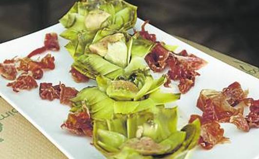 3. Sacamos las alcachofas y, cuidadosamente, abrimos el centro de cada flor para colocar los trozos de foie.