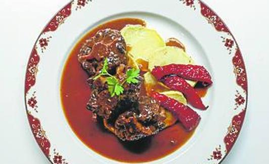 10. Dejamos que, tras arrancar el hervor, todo cueza suavemente entre tres y cuatro horas, es decir, hasta comprobar su ternura y ver que la carne se despega del hueso.