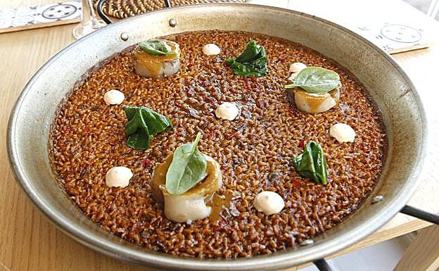 El Levante aporta sus arroces gruesos, sueltos, corpóreos, con más o menos caldo e igual suavidad de paso. O sus fideuás. Los compangos son de kilómetro cero, faltaría, igual que los pescados de millas casi cero. Y luego hay platos, pongamos por caso el asado de peras y berenjenas, sardina ahumada y requesón La Fontana de Luiña, o la receta aquí encima resumida, para instagramearlos con sentido y orgullo.