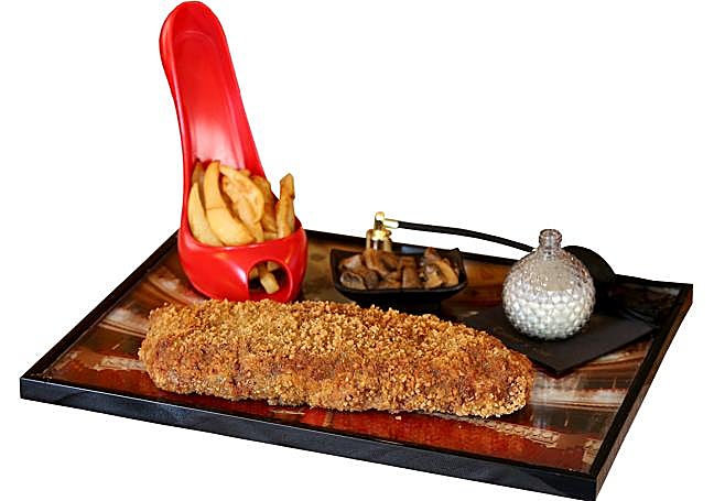 2 filetes de ternera asturiana IGP, jamón serrano, crema de quesos variados asturianos, verduras asadas al carbón, harina de maíz, huevos camperos, pan rallado casero, aceite.