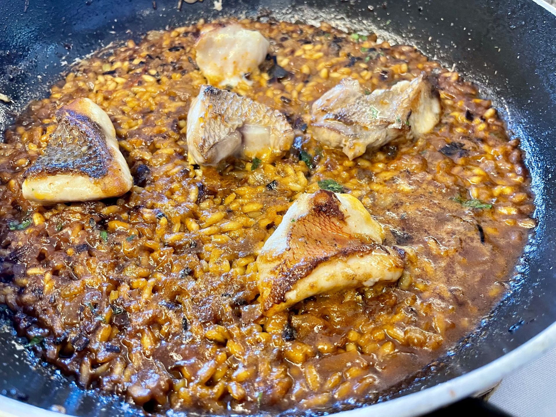 Los arroces, espectaculares, tanto de punto como de sabor. Probamos el de pescados de roca y el arroz negro, que venía presentado con alioli.
