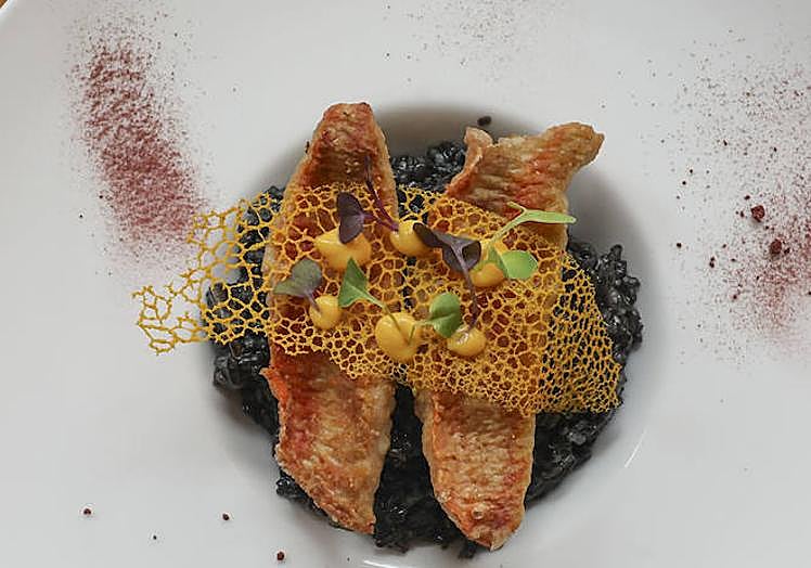 Arroz negro con calamares y salmonetes