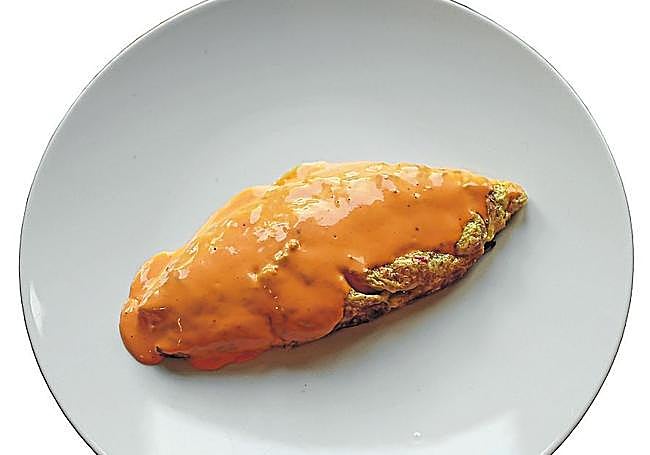 Con sumo cuidado, sacamos las lascas de la merluza. En un bol, batimos los huevos, ponemos a punto de sal, añadimos las verduras pochadas y la merluza y el perejil picado finamente. Cuajamos la tortilla en sartén antiadherente a fuego medio dándole forma ovalada y dejándola jugosa en el centro. Disponemos la tortilla en un palto llano y cubrimos con la emulsión de sidra.