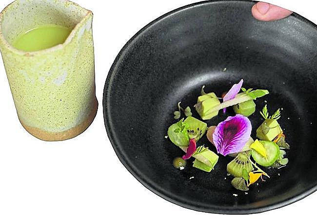 Gazpacho verde de manzana, aguacate y kiwi asturiano. Ricardo Sotres. Palacio de las nieves, Langreo
