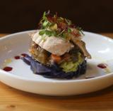 -Pochamos el medio calabacín, la berenjena, el ajo puerro y una cebolla tierna, todo cortado en dados. Cuando esté, añadimos el chorro de miel. Disponemos por encima.-Desmigamos la perdiz antes de colocarla encima y, para terminar, decoramos poniendo por encima el cilantro y unos hilos de chili. Acabamos echando por encima el escabeche.