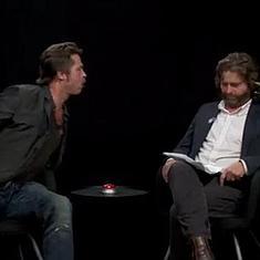 La estrella de Hollywood acudió al programa del famoso cómico estadounidense Zach Galafianakis, que realiza entrevistas en tono de humor. Le preguntó que si creía que la gente se fijaba demasiado en su aspecto y en realidad no se daban cuenta de que era un actor «de mierda» y el marido de Angelina respondió así