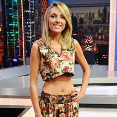 Sea lo que fuere, lo cierto es que la presentadora estaba sonriente y profesional, como es habitual en ella, y lucía un espectacular top corto que mostraba su espléndida figura.