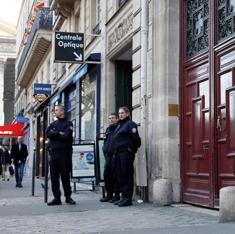 Guardias ante el apartamento donde tuvo lugar el asalto.