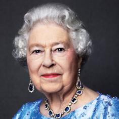 El zafiro es la gema que simboliza el 65º aniversario y la Casa Real redifundió una foto de 2014 de la monarca con un vestido tocado con varias de estas piedras preciosas, así como un collar y unos pendientes. El collar fue un regalo de boda de su padre, data de 1850 y está hecho de 16 zafiros rodeados de diamantes. "Tiene unos ojos muy amables con un destello travieso. Siempre me gustaron las mujeres fuertes, y ella es una mujer fuerte", dijo el autor de la fotografía, David Bailey, cuando la tomó hace tres años.