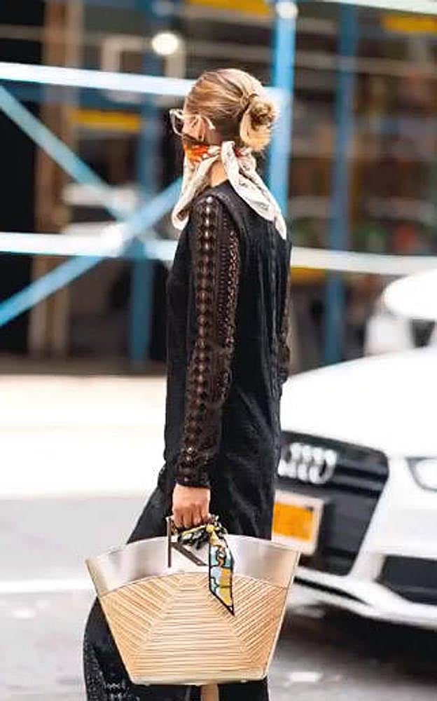 La socialite neoyorquina incorpora este accesorio a sus estilismos anudándolo al cuello y dejando a la vista una llamativa lazada en la parte frontal. Un truco perfecto para abrigar la zona del cuello y además sumar un toque de glamour al estilismo. Suele decantarse además por colores y estampados que contrasten con el resto del look, con el fin de dar aún más protagonismo a este accesorio.