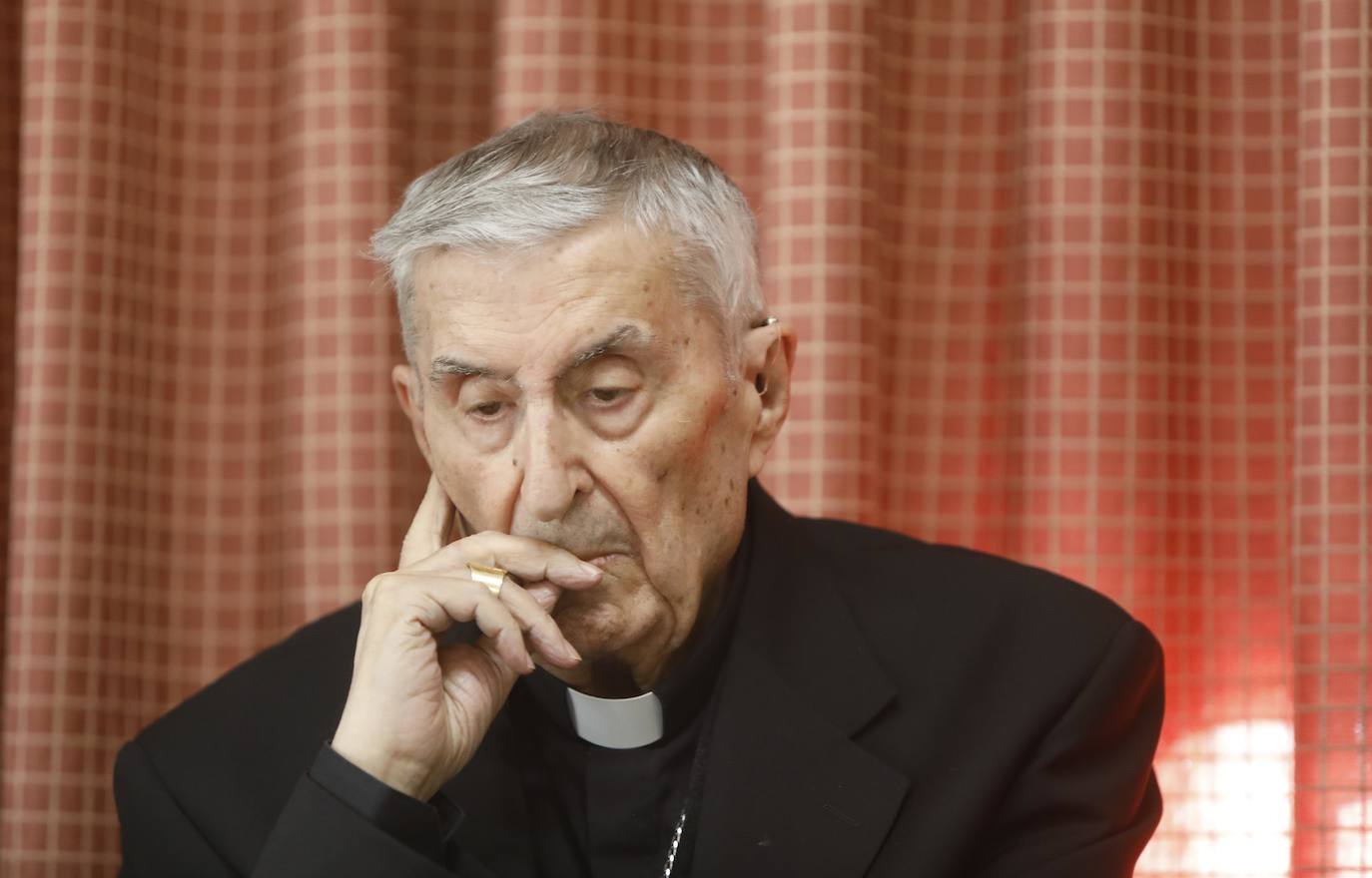 Cuando fue ordenado obispo con 39 años, Gabino Díaz Merchán, don Gabino, se convertía en el prelado más joven de toda Europa. Hoy, con 93 años, es el único arzobispo del mundo que sigue vivo de todos los que asistieron al Concilio Vaticano II. Entre medias, toda una vida dedicada a la Iglesia y una relación más que estrecha con Asturias, donde fue arzobispo de Oviedo entre el 6 de agosto de 1969 y el 7 de enero de 2002. Y si durante su prelatura ya fue reconocido por su implicación con el Principado, su decisión de dar un paso atrás y estos 18 años de mesura en su retiro no han hecho más que realzar su prestigio. Hasta el pasado domingo, cuando sufrió una caída al vestirse el alba antes de asistir a misa de 12 en la Casa Sacerdotal de la capital asturiana, donde reside, llevaba una vida sencilla, carente de lujos, pero plena en el aspecto intelectual. Desde el viernes, cuando recibió el alta, empieza a recuperarla. Una fisura en el trocánter del fémur de su pierna izquierda y un fuerte golpe en la cara y la frente, que requirió de 8 puntos de sutura sobre la ceja, le mantuvieron ingresado en el Centro Médico de Oviedo durante cinco días, con su maltrecha extremidad inmovilizada y tirando de analgésicos. En ningún momento se quejó de dolor. «La vida es un regalo, y así hay que vivirla hasta el final», comenta mientras se recupera.