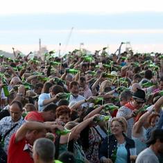 Una hora después de abrir las puertas, ya eran 4.000 los que habían aportado su granito de arena a la causa. Luego, 4.600. Y 5.981. Y también 6.540. Mientras, como si se tratara de los niños de San Ildefonso cantando el 'Gordo' de Navidad, desde megafonía iban desmenuzando unas cifras que cada vez se acercaban más al objetivo. Y por fin, bien pasadas las 21 horas, 8.564. Y tras el clímax del momento, todos al unísono -que sino, no vale- y guiados desde lo más alto de Poniente, se pusieron en posición y comenzaron a empinar la botella. Tras ello, un 'Gijón del alma' coreado por miles de almas y un 'Asturias patria querida' para celebrar que la unión hace la fuerza, y que en Gijón de eso van sobrados.