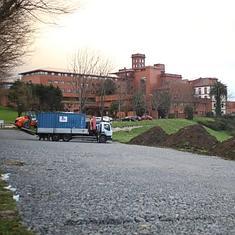 Pistoletazo de salida para la ampliación del Hospital de Jove. Tras una dilatada espera para hacerse con la preceptiva licencia de obras por parte del Ayuntamiento de Gijón, el centro concertado inició esta semana los trabajos que harán posible ampliar y reformar un edificio sanitario con más de doscientos años de historia. Desde principios de semana, camiones, grúas y casetas de materiales han pasado a formar parte del paisaje de Jove. Será así durante 36 meses que es el tiempo que se estima durará el desarrollo de esta actuación que cambiará por completo la cara del hospital. Y lo hará tanto por fuera como por dentro.