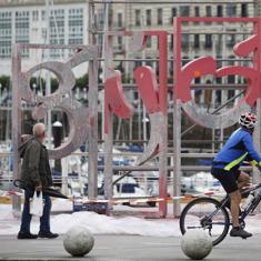 El característico color rojo de las 'letronas' de Gijón en el Muelle ha desaparecido de forma temporal. Durante las labores de limpieza de la obra (debido a las numerosas pintadas que presentaba), el color ha sido retirado, dejando al descubierto las piezas originales, de acero macizo. Después, recuperarán su tonalidad.
