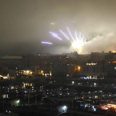 Cuando llegó la hora de lanzar los fuegos la zona se veía mucho más despejada que durante la tarde, por lo que "se decidió lanzarlos". Lamentablemente, apenas se vieron unos pocos al principio. "Las previsiones no siempre aciertan al 100% y la bruma aumento de altura, pero no hasta esos 300 metros". Eso, unido a la ausencia de viento provocó un problema mayor a la visibilidad. Y es que "todo el humo de la pólvora que explotaba se quedaba en el mismo lugar".