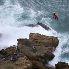 Tras un tenso y complicado rescate, el hombre fue izado en camilla hasta el Helimer, que una vez tocó tierra, fue trasladado en ambulancia hasta el hospital.