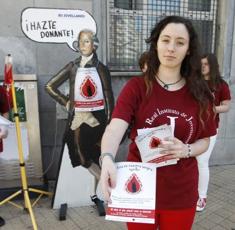 Alumnos del instituto Jovellanos salieron ayer a la calle para convencer a los gijoneses de la necesidad de donar sangre. La clase de tercero F organiza esta campaña, en la que animan a acudir mañana, de 9 a 14 y de 16 a 21 horas, a donar a la unidad del Centro Comunitario de Sangre, que estará en la calle Alfonso X, esquina con Magnus Blikstad.