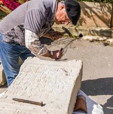 Ante la atenta mirada de los emisarios llegados desde Gijón, el polifacético Ramón Alzola comenzaba la mañana puliendo en la fragua sus herramientas: buriles y cinceles. La forja en la que trabaja también tiene su historia, aunque no tanta como la piedra que permaneció 19 siglos enterrada en el barrio de Pumarín.