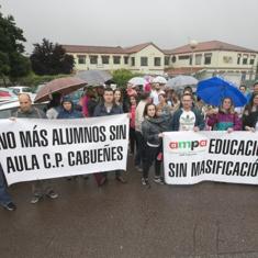 La Junta Directiva del AMPA del colegio Cabueñes mantuvo al inicio de la semana una reunión con la dirección del centro escolar en relación con la apertura del tercer aula en primero de Primaria y ambas partes concluyeron que dicha medida va en perjuicio de la calidad de enseñanza en el centro, por lo que ayer por la mañana la comunidad educativa se concentró dentro del recinto en señal de protesta. La asociación de padres avisa de que las movilizaciones continuarán como señal de protesta.