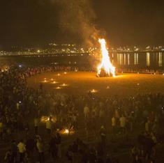 Noche de San Xuan, noche de cuélebres, xanes, folixa y misticismo. Pese a su corta extensión, la noche dio para mucho en todo el concejo, tomado por las hogueras y la sidra desde Poniente a La Camocha. La más multitudinaria, como ya es tradición, fue la de Poniente. Allí, miles de vecinos tomaron el arenal en torno a sus fuegos, más o menos cuidados, para deshacerse de los apuntes del año, las facturas ya pagadas y de toneladas de madera. Era hora de quemar el pasado y mirar al futuro cercano con ilusión renovada. No en vano, San Xuan es el comienzo del verano para muchos de los que ayer celebraron. Les esperan dos intensos meses por delante.