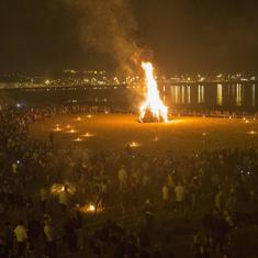 Noche de San Xuan, noche de cuélebres, xanes, folixa y misticismo. Pese a su corta extensión, la noche dio para mucho en todo el concejo, tomado por las hogueras y la sidra desde Poniente a La Camocha. La más multitudinaria, como ya es tradición, fue la de Poniente. Allí, miles de vecinos tomaron el arenal en torno a sus fuegos, más o menos cuidados, para deshacerse de los apuntes del año, las facturas ya pagadas y de toneladas de madera. Era hora de quemar el pasado y mirar al futuro cercano con ilusión renovada. No en vano, San Xuan es el comienzo del verano para muchos de los que ayer celebraron. Les esperan dos intensos meses por delante.