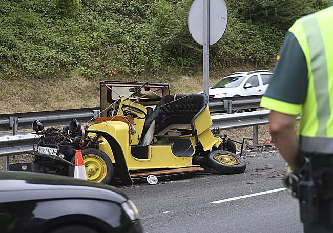 El vehículo clásico volcó sobre la calzada tras el choque y quedó para siniestro total. Su conductor sufrió lesiones en la cara y su mujer en las piernas. El amigo de ambos también salió mal parado del choque.