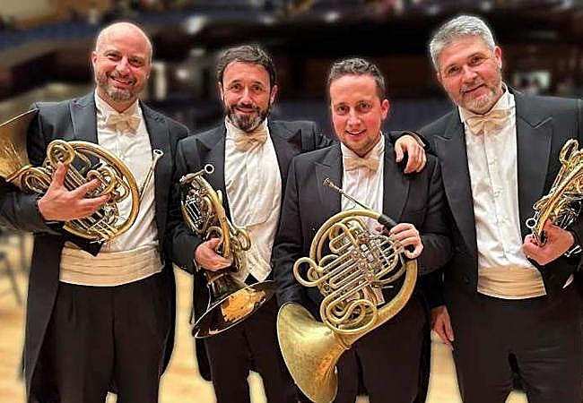 El Cuarteto de Trompas integrado por José Luis Morató, Javier Molina, David Rosado y Jesús López presenta su espectáculo 'La trompa en movimiento: de lo clásico a lo moderno'. Se trata de la exploración musical de un instrumento de la familia de los metales, pero algo menos conocido que otros. Es un viaje a través de diferentes estilos musicales, desde la majestuosidad y la solemnidad de las fanfarrias clásicas hasta los ritmos dinámicos y sincopados de la música moderna. No solo resaltarán, durante su propuesta, la riqueza sonora de este instrumento, sino también la capacidad de adaptación que tiene a diferentes géneros musicales, que irán desfilando por las tablas.