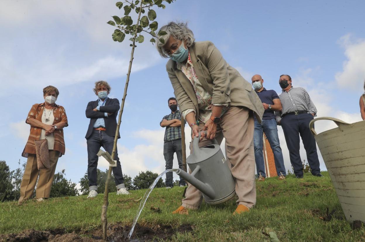 La alcaldesa de Gijón plantó ayer un manzano en la Llorea con motivo de la fiesta de la sidra