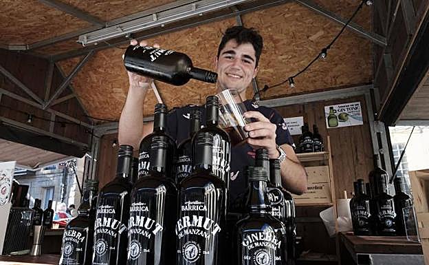 Cuando todo parecía estar medio hecho con un producto a priori tan cotidiano como una manzana, llega El Molín del Nora con ginebra, a la que le añade zumo de la fruta, a revolucionar los digestivos. Y no solo eso, sino también vermú, acompañado por un par de hielos y un trozo de manzana deshidratada. Así lo sirve Álvaro Díaz en el mercado de la XXVIV Fiesta de la Sidra Natural, instalado entre la plaza Mayor y los Jardines de la Reina. «Este año no hemos traído novedades, pero estamos proyectando cosas nuevas a raíz del vermú que iremos desvelando con el tiempo», confesó Álvaro con aires de misterio.