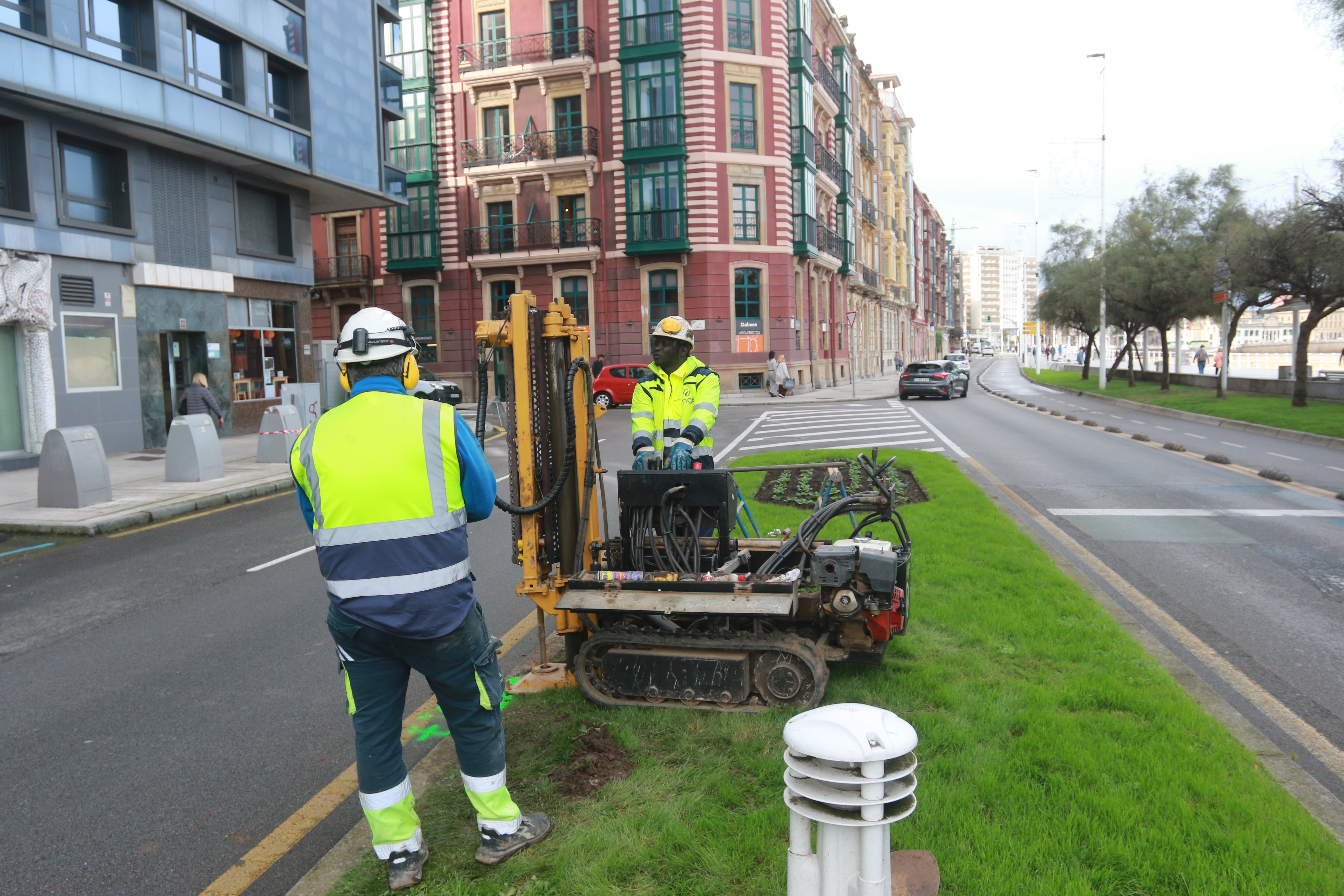La empresa Instrumentación Geotécnia y Estructuras (Inge), adjudicataria de los sondeos para estudiar la viabilidad del soterramiento del tráfico en el Muro, ya están trabajando sobre el terreno con el posicionamiento de la maquinaria en las zonas donde van a comenzar las prospecciones. Una máquina de sondeos se encuentra ya en las inmediaciones de la rotonda del Piles para iniciar de inmediato las catas y otra máquina más pequeña, denominada de penetrómetros, estuvo haciendo ensayos ya en la mediana verde de la zona más próxima a la calle Eladio Carreño.