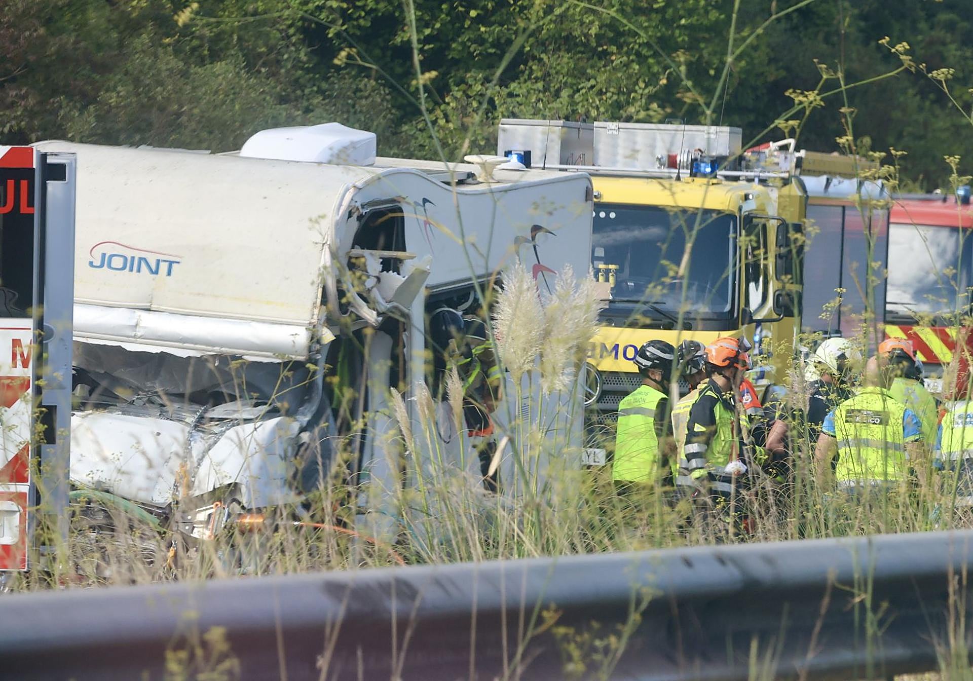 La autopista 'Y', colapsada por un grave choque entre una autocaravana y un camión junto al viaducto de Somonte en sentido Gijón