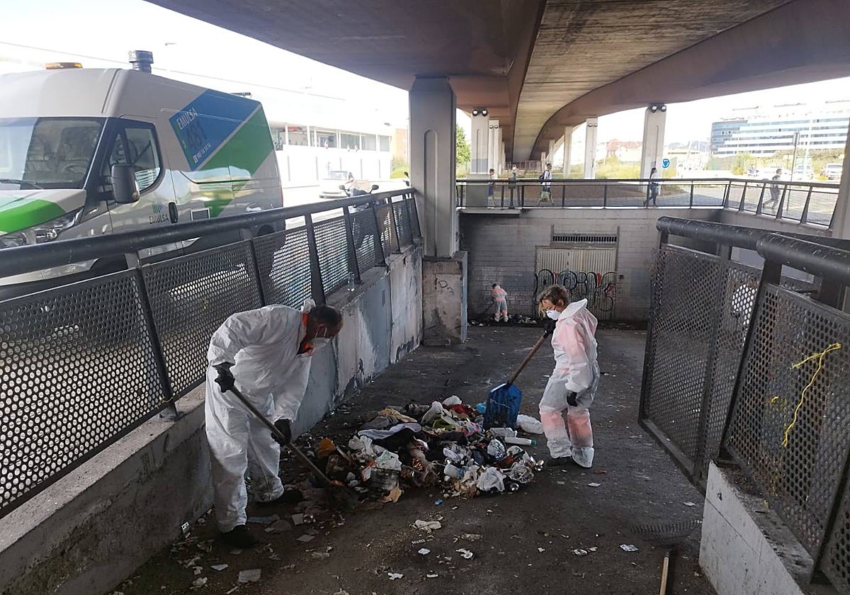 Emulsa realiza a instancias de Servicios Sociales una limpieza extraordinaria de la zona, en la que duermen varios 'sintecho'