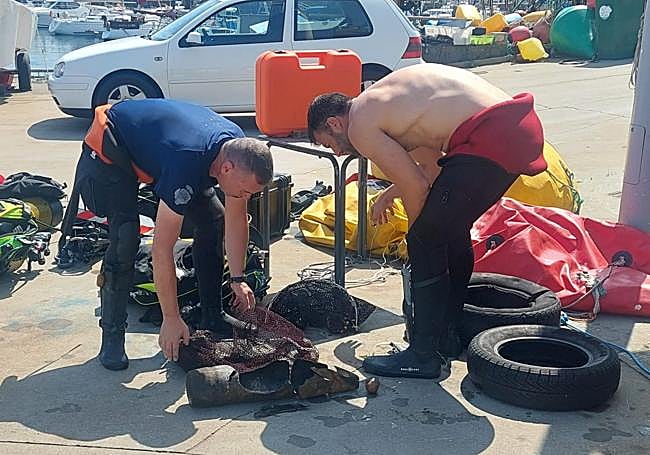 En menos de doce horas desde el descubrimiento de la Guardia Civil, la Marina de Guerra tenía desplegados en la costa de Gijón a seis buzos y una lancha de apoyo. A las ocho de la mañana comenzó un operativo que se prolongó durante más de cuatro horas. El primer proyectil fue localizado por el GEAS, y el segundo por los propios submarinistas de la Armada. Su posición, a apenas tres metros de profundidad, facilitó las labores de localización, estudio del operativo, actuación sobre los proyectiles y revisión de la zona.