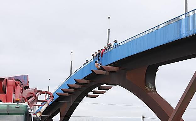 Para entonces, los bomberos habían desplegado debajo de la pasarela una colchoneta de grandes dimensiones para intentar amortiguar el impacto si se producía la caída. Con la ayuda de cuerdas y arneses, los agentes y los ciudadanos anónimos consiguieron poner en tierra firme al joven, que fue trasladado a la unidad de Psiquiatría del Hospital de Jove.