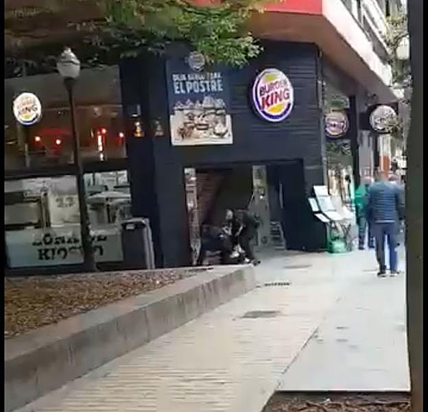 En el lugar de los hechos ya no se encontraba el agresor que según los testigos había salido corriendo por la calle Corrida y había entrado en un establecimiento de comida de la plaza de Italia. Los agentes lo esperaron a la salida del local y éste les acometió y forcejeó con ellos para evitar que le identificaran. Finalmentefue detenido por atentado a agente de la autoridad al resultar heridos los componentes de la patrulla actuante, a los que llegó a tirar al suelo.