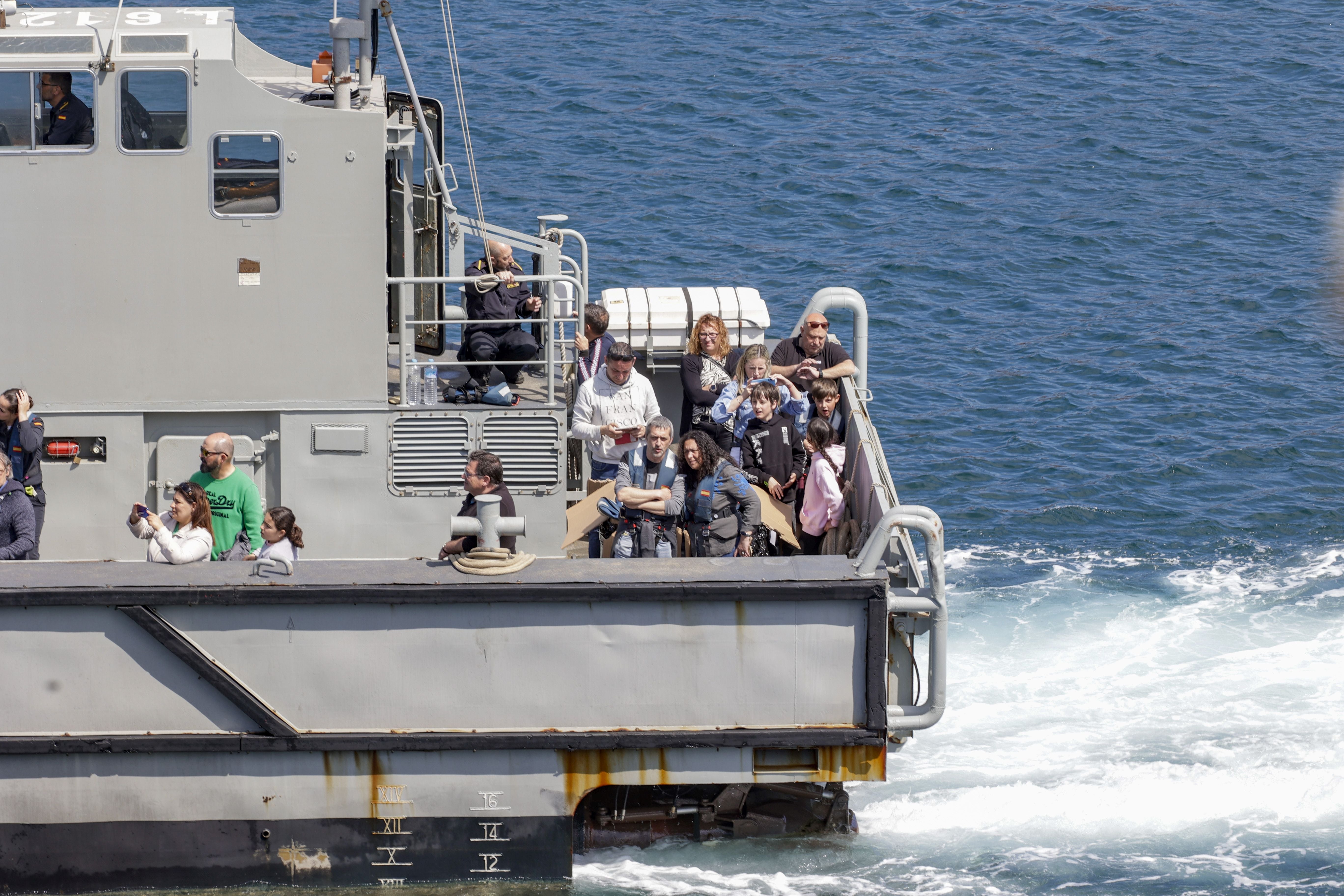 El furor por las Fuerzas Armadas provoca largas colas para coger el autobús hasta El Musel
