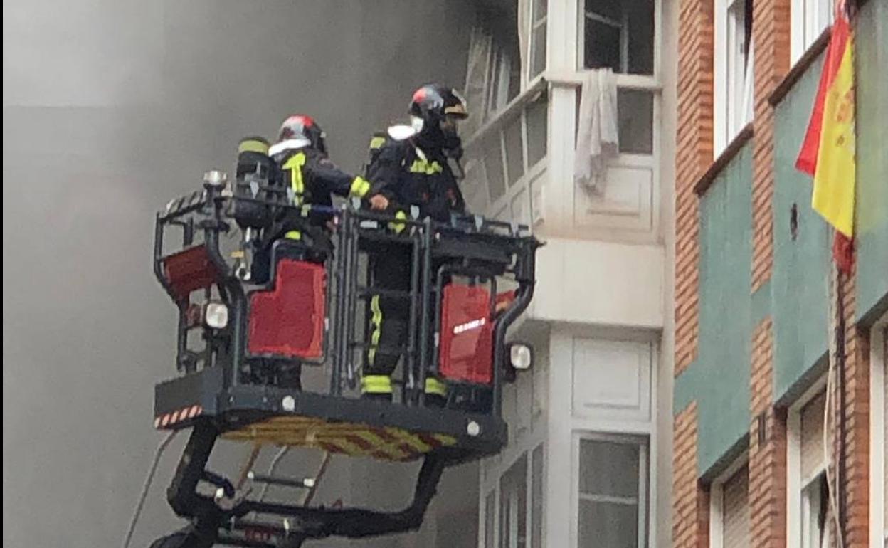 Bomberos de Gijón, Policía Local y Nacional trabajan para combatir el incendio declarado en un piso de la calle Begoña de Gijón