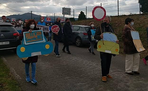 «Nos van a llenar de tráfico esto, que aunque esté asfaltado al final son caleyas por las que paseamos y no están preparado para eso Cuando esté la ITV no podremos hacerlo», lamentaba Maribel González, vecina de la zona. Lucía Pérez acudió acompañada de sus hijas Alba y Marina, que llevaban carteles en los que decían «Yo lo que quiero es ir en bici por mi pueblo». Su madre explicaba que «todas las casas de la parroquia fan directamente a la carretera», advirtiendo del peligro que supondrá la continua entrada y salida de vehículos de la nueva estación.