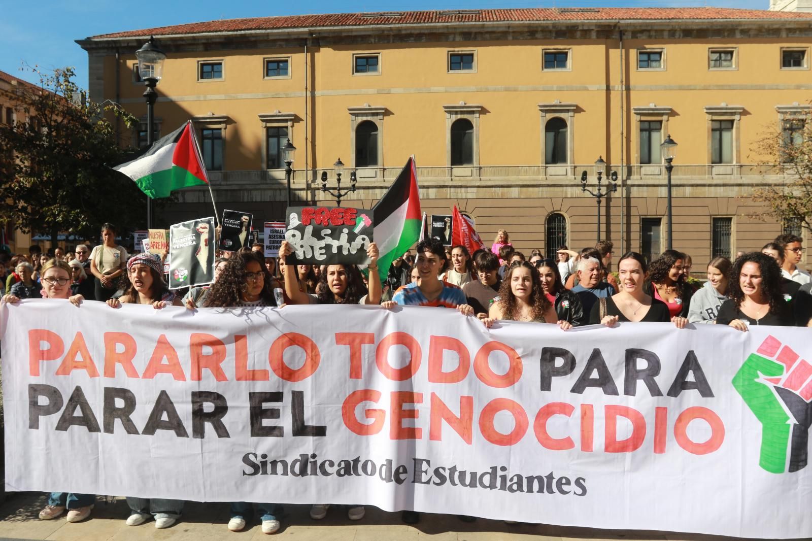 Más de un centenar de estudiantes se concentraron en Gijón y en Oviedo en una jornada de lucha y movilización en solidaridad con Palestina