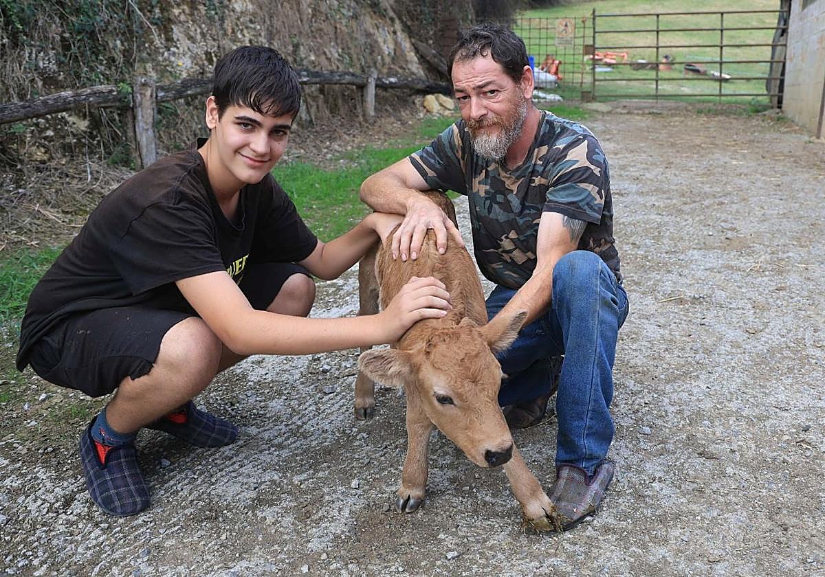 A las pocas horas 'Milagros' se levantó y ya camina por la cuadra con soltura, sin ser consciente de que en la zona, todos hablan de ella. Es una xata sana, a la que le quedaban unas dos semanas para venir al mundo, pero que lo hizo antes de tiempo de la forma más abrupta posible. Le faltan las atenciones de su madre, pero Ramón y su hijo Miguel no escatiman en cariños con una vaca tan especial.