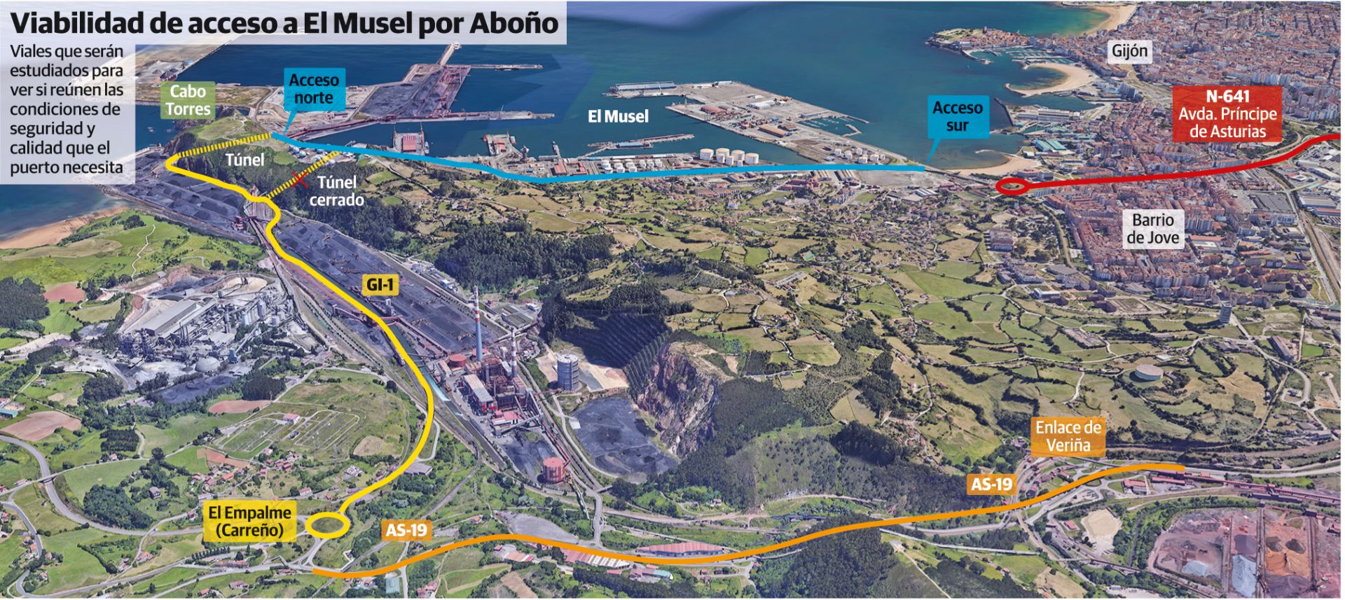 Como consecuencia de ello, en la actualidad se está desarrollando un estudio de viabilidad de un nuevo acceso al puerto de Gijón por Aboño (carretera GI-1) que mejore el existente, disponga de la capacidad de suficiente en condiciones de seguridad y que permita que el acceso a través de la avenida Príncipe de Asturias se limite a vehículos de dimensiones especiales. Para que esta actuación sea completa se requiere la conversión en autovía de la carretera AS-19 en una longitud de 1 kilómetro y la remodelación del enlace de El Empalme, en Carreño.