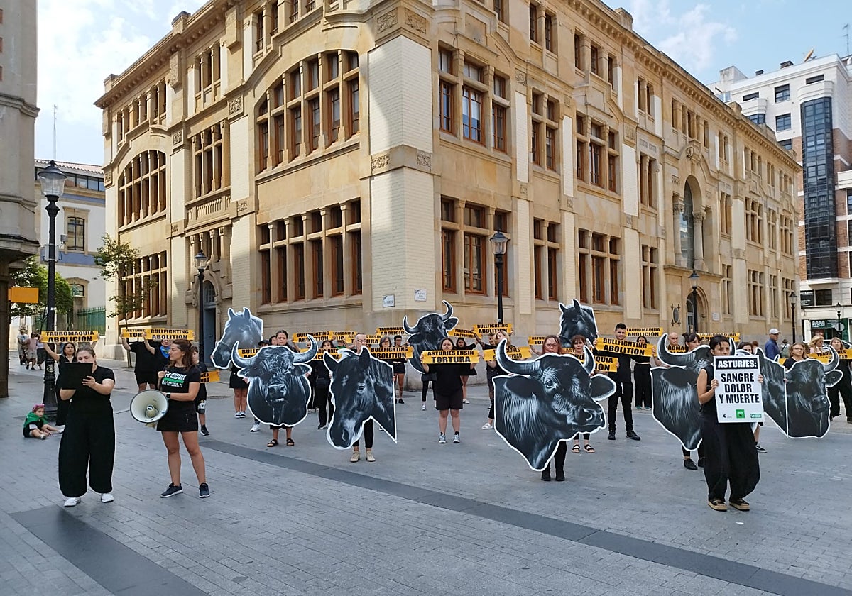 La 'performance' tuvo como organizadores a la plataforma Asturies Antitaurina, apoyada por Animanaturalis y la organización CAS International. Esta plataforma seguirá 'calentando' la manifestación con otras dos acciones previas. El jueves 14 un camión con imágenes impactantes recorrerá la ciudad durante ocho horas y el viernes 15 se organizará una vigilia por la noche con velas delante de la puerta principal de la gijonesa plaza de toros de El Bibio.